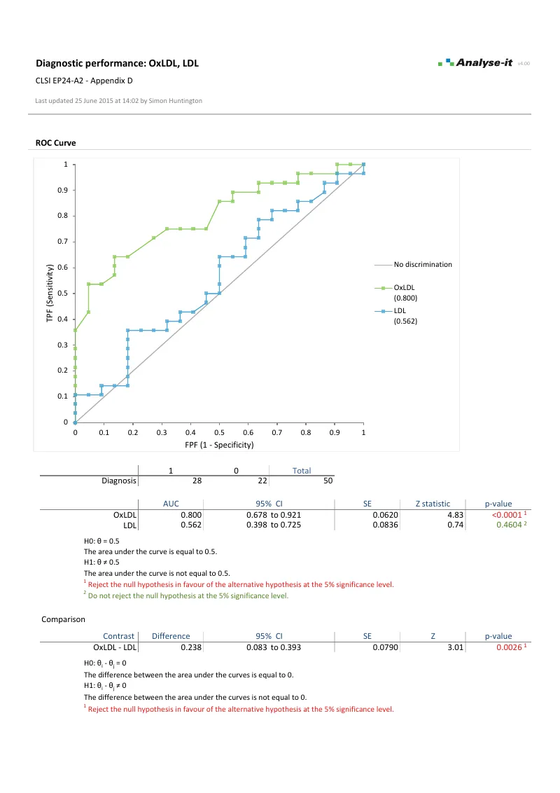 - Overlaid ROC curves for test comparison