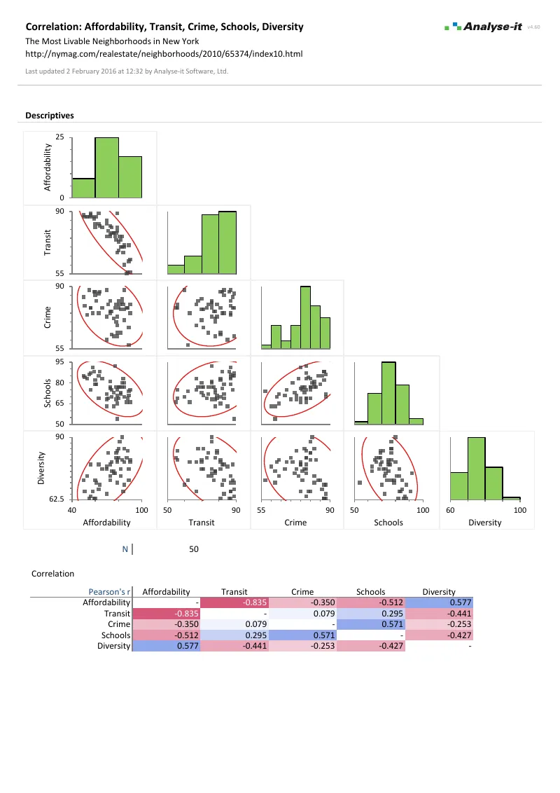 NYC neighbourhood liveability, 50 observations × 5 variables.