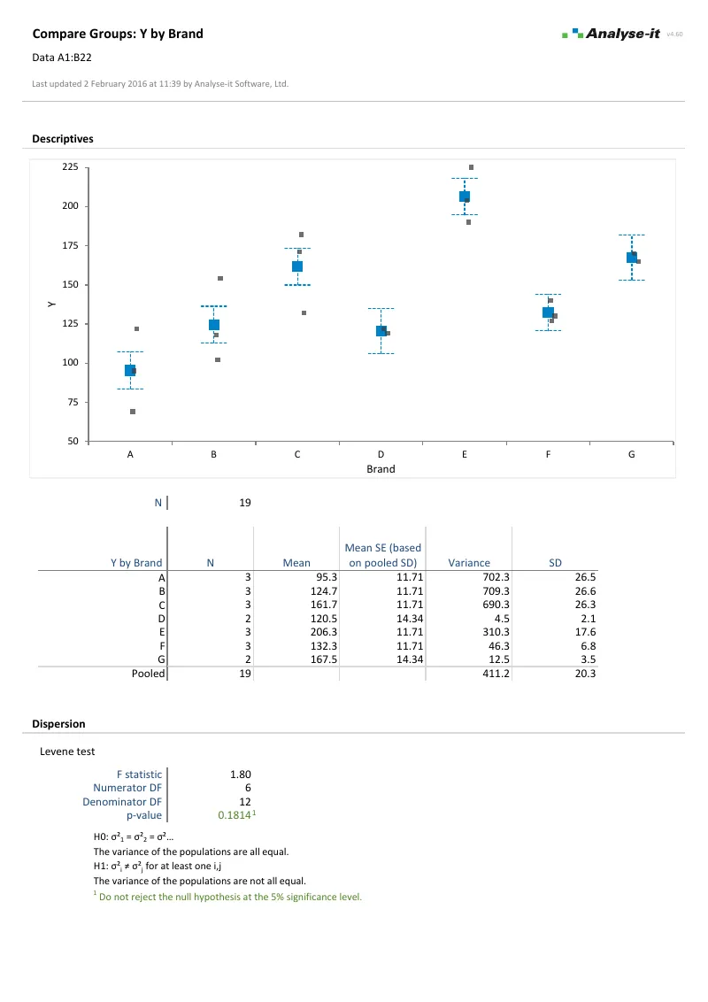 - Brown-Forsythe test for homogeneity